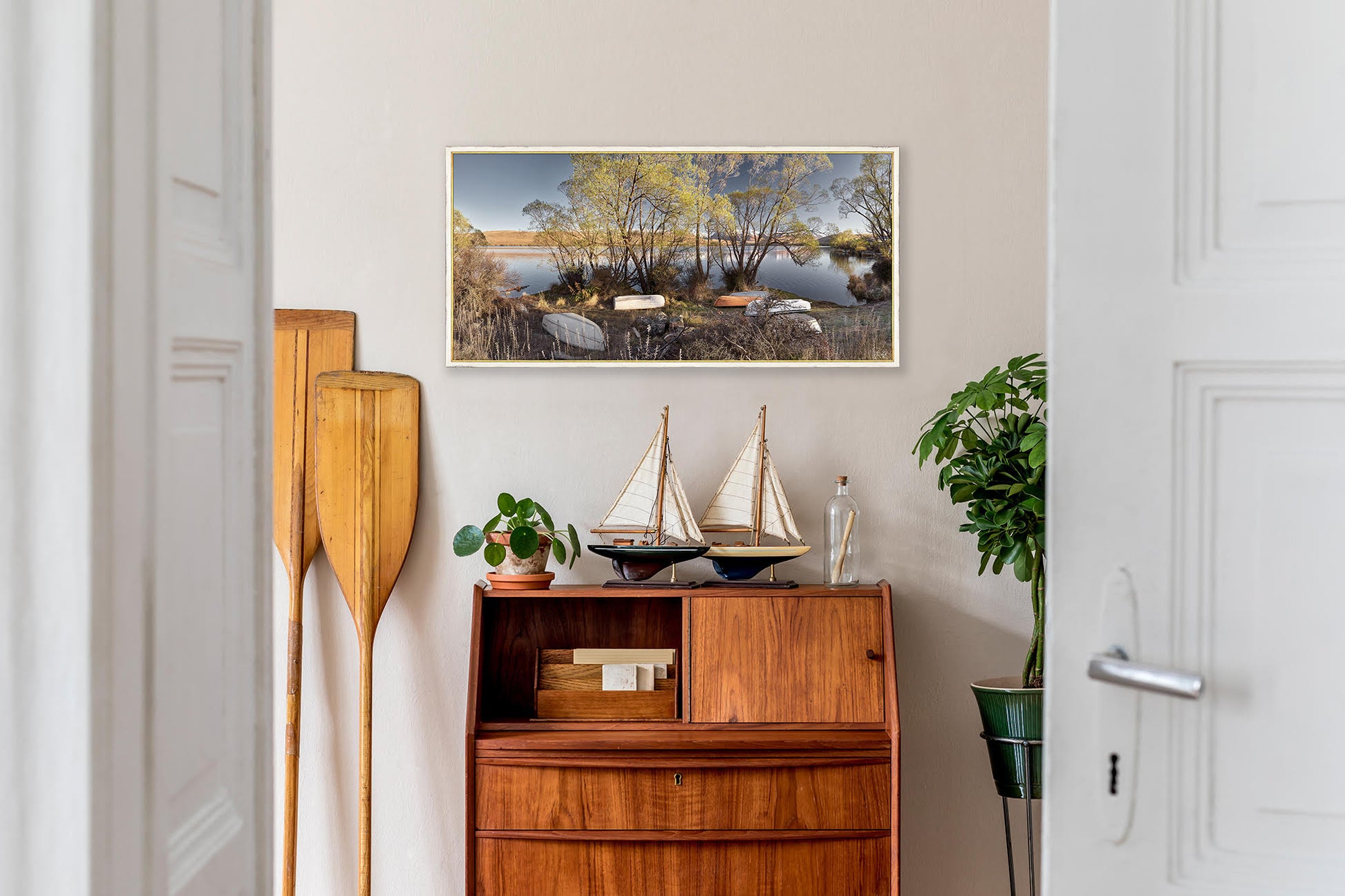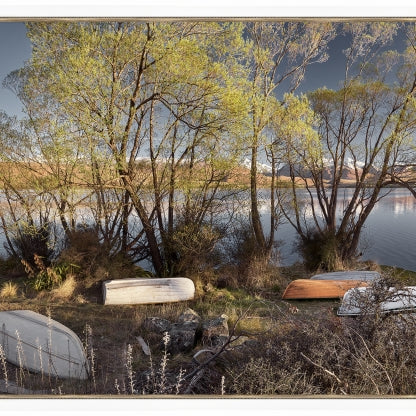 "Sometimes what you think is going to be the best composition, isn't always so. Such as this crisp spring morning at Lake Alexandrina. I initially sought a wide panorama & positioned myself further up the hill, gradually freezing as I waited for the sun to rise! Once it did, I captured several wide views & thought that was it. But as I walked past these dinghies, the early light was igniting the grasses & just kissing the boats, so I knew this was my best image - by far! This is the first of my pastel series, a timeless range which reminds me of scenes captured during the 50''s & 60's. Back when the pace was more leisurely & life a lot simpler."