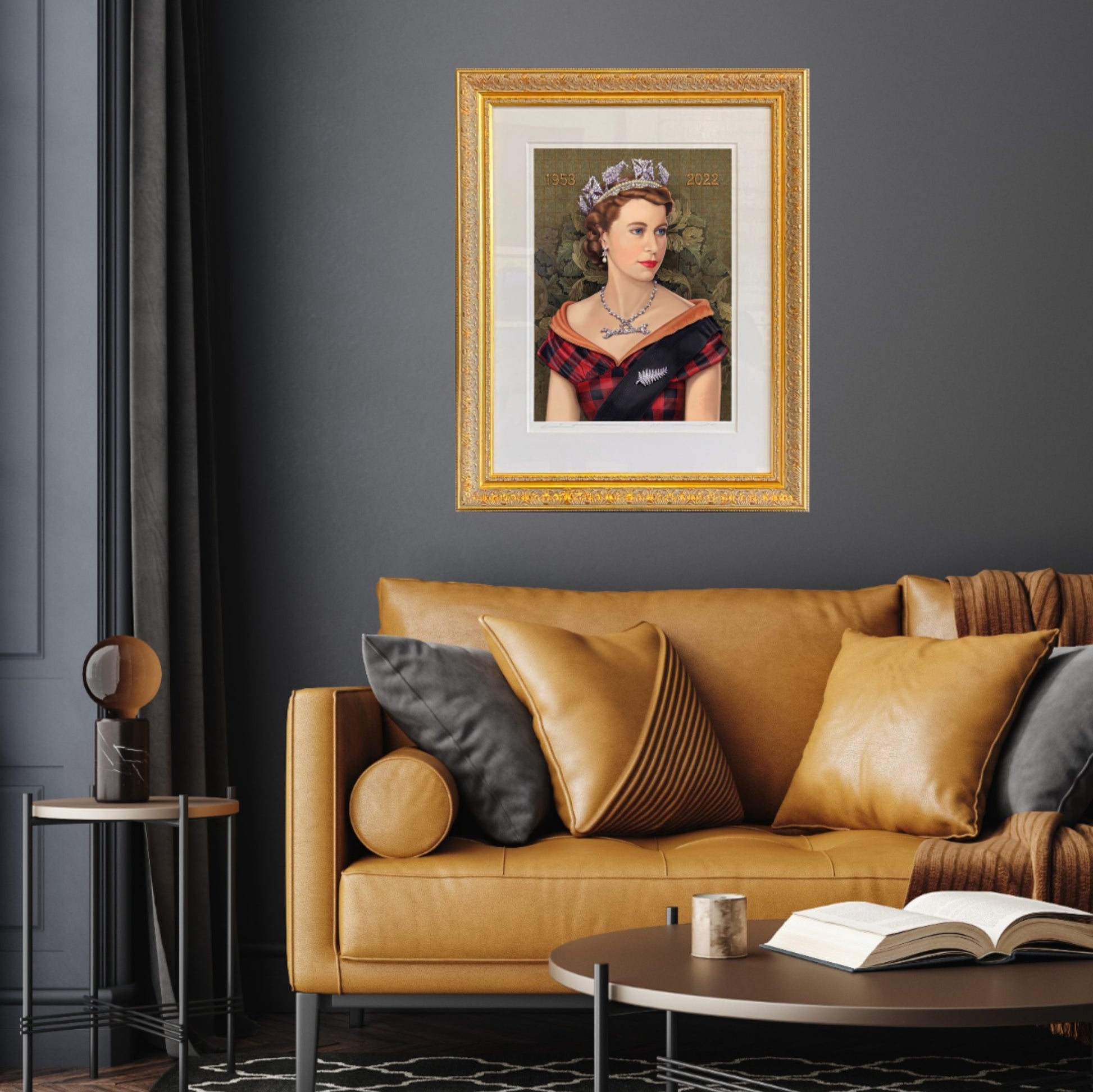 We are happy to announce “A Kiwi Queen” by Lester Hall is back gracing our walls. Liz is framed in a splendid ornate gilt frame. Literally fit for a Queen.