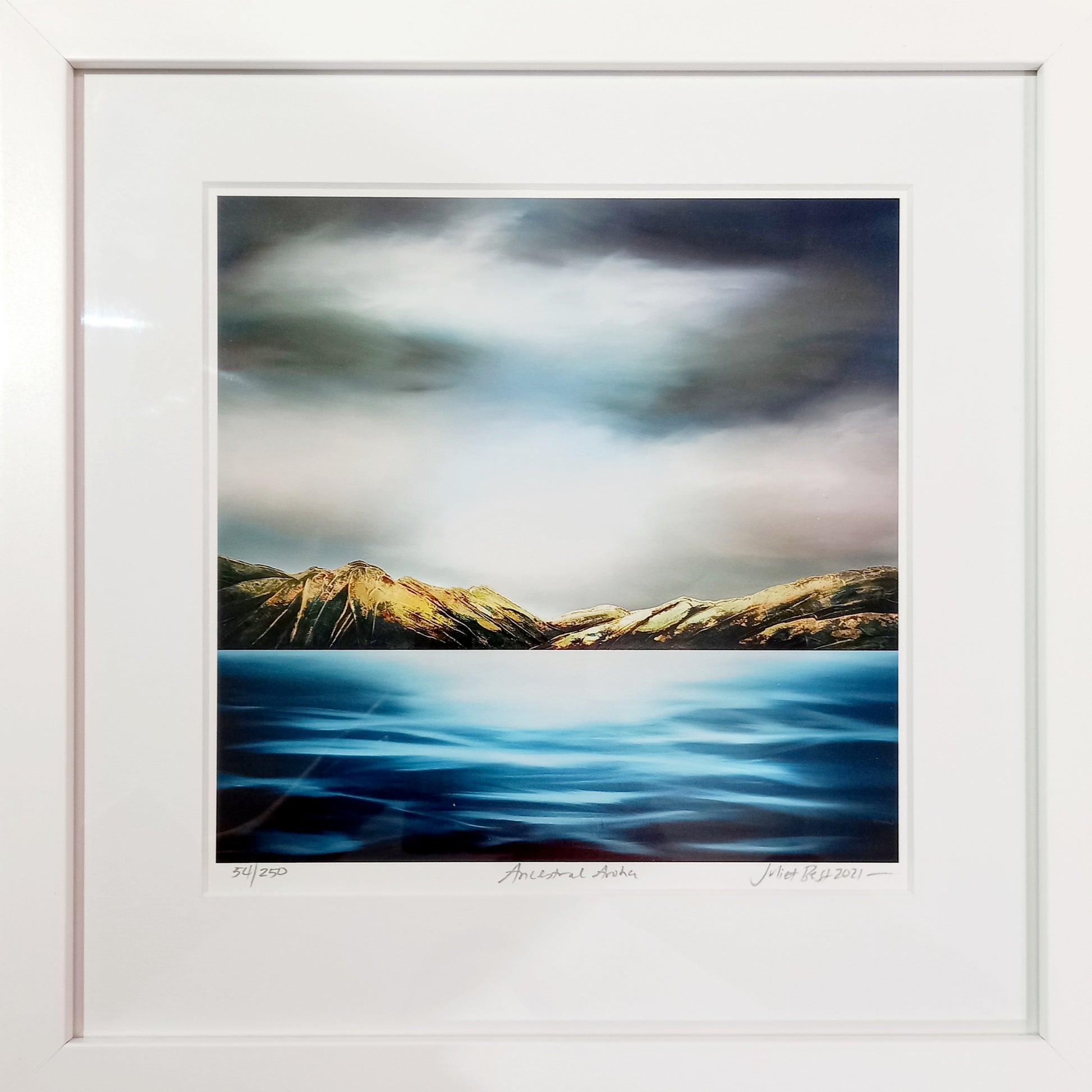 My latest paintings, include strong horizon lines and my ongoing work with gold leaf celebrate the beauty and moods of New Zealand skies, landscapes and water