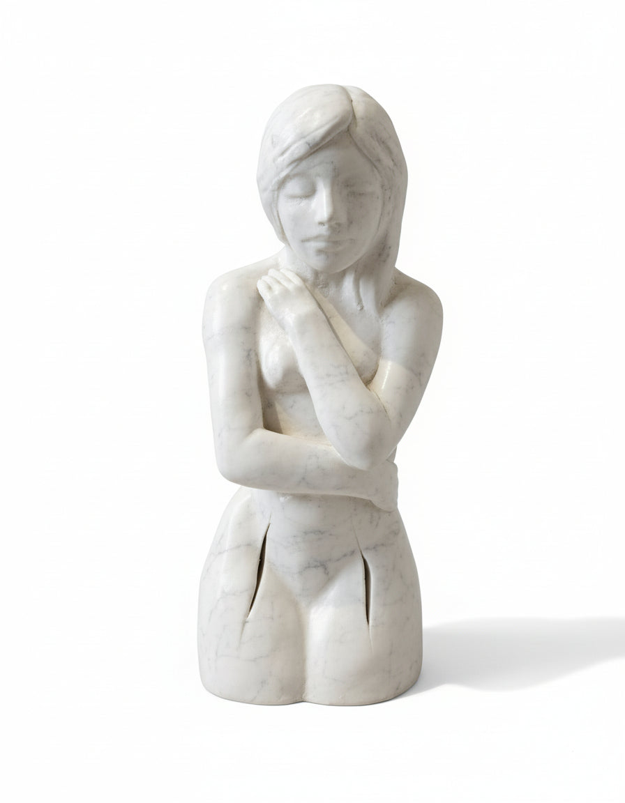 All my work reflects my own feelings and experiences. Fragility is a recurring theme in most of my finished pieces… Humans are so fragile but at the same time so strong. It’s about mental illness and the effects it have on us. I am married with two kids and I immigrated from South Africa 12 years ago. We recently settled in the beautiful Cambridge. I am a full time ceramic sculptor and work from my studio in the Whitehall area.