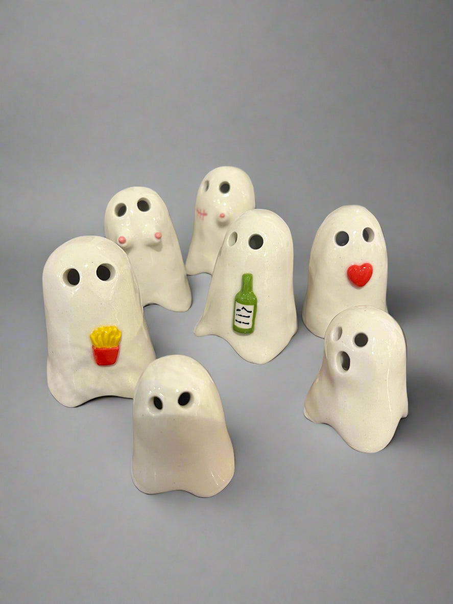 The Boo Crew are all approx 6cm wide and 7cm tall but there is some variation between them. They are all hand sculpted from NZ clay and finished with a lovely glossy glaze.