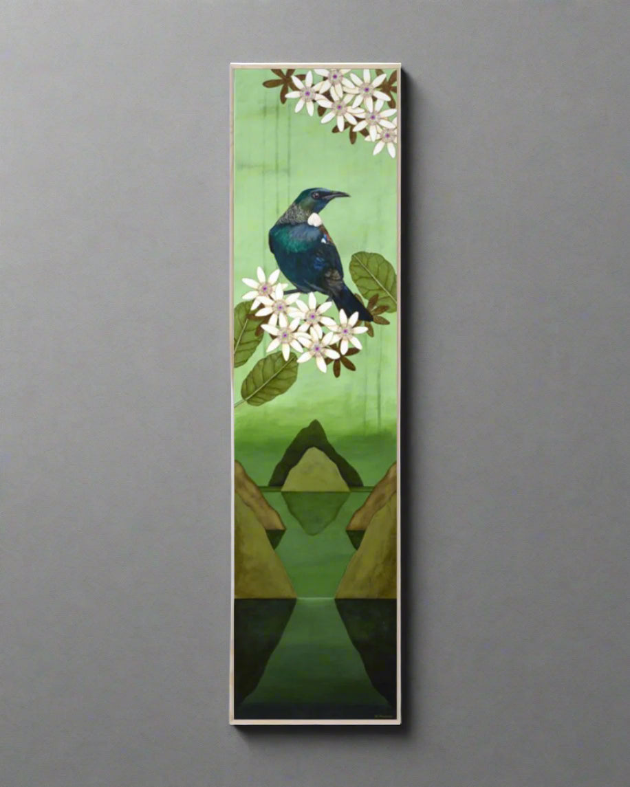 Bought up by an artistic father she was encouraged to explore her natural creative abilities. As a self taught artist she draws her inspiration from pacific landscape, objects and native birds working in acrylics with layers of colour and texture to give the viewer a feel of depth.