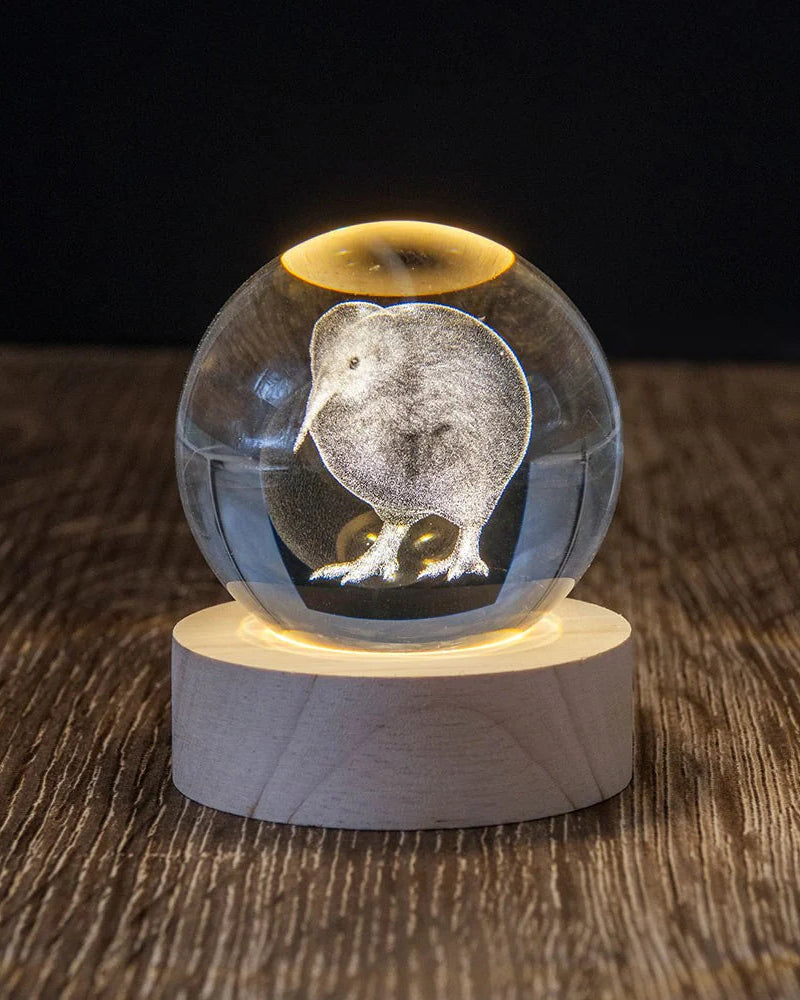 The Kiwi LED Globe features a finely detailed 3D laser-engraved design inside a 60mm glass sphere. Set on a natural wooden base with soft LED lighting, the design is illuminated to reveal its intricate detail. Powered by USB and fitted with a simple in-line on/off switch, the globe is both practical and decorative. Each piece is presented in a smart gift box, making it an ideal keepsake or gift.