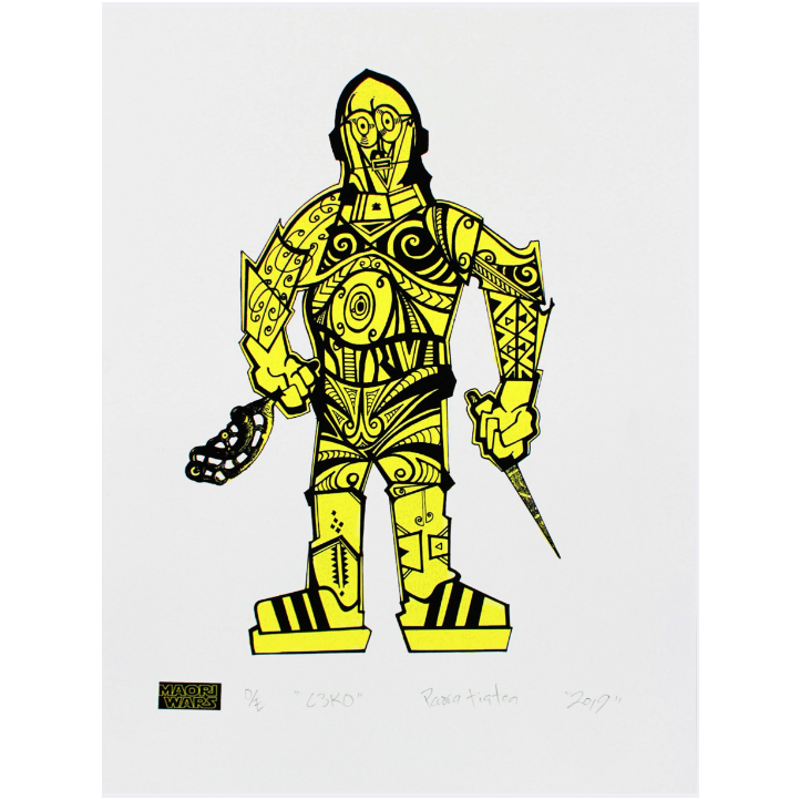 My journey has involved a fusion of influences, stories, bold colour and tohu (sign). These include Māori creation myths, tā Moko, tāonga held in the British Museum, popular culture, art history, ‘DJ-ing’ and personal narrative. My screen prints are not about a single issue, but rather cover many issues that are interconnected. I am attracted to beauty in whatever shape or form it may present itself to me and hold things that are precious or have cultural significance paramount in my work.