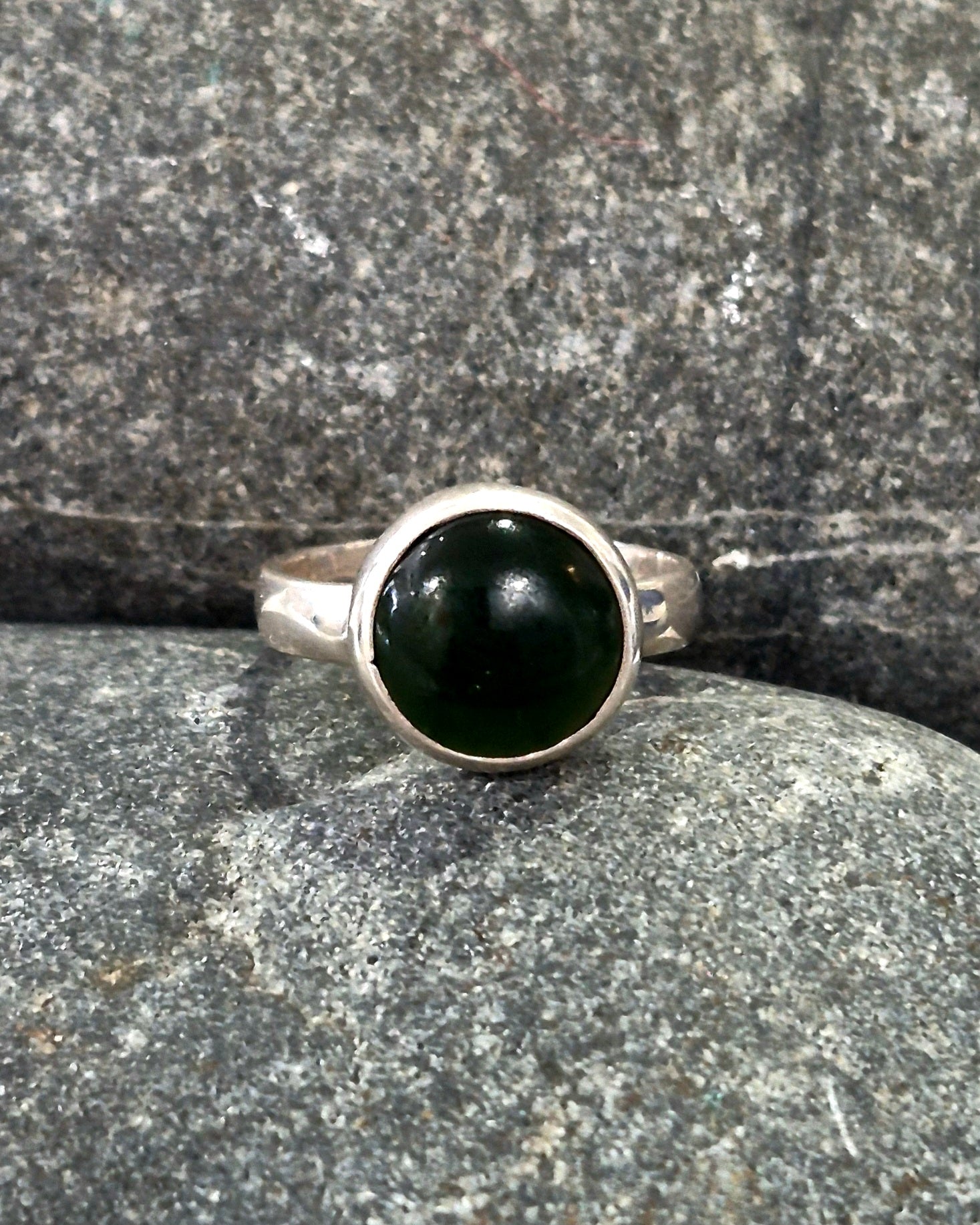 Pounamu Round Dome Silver Ring