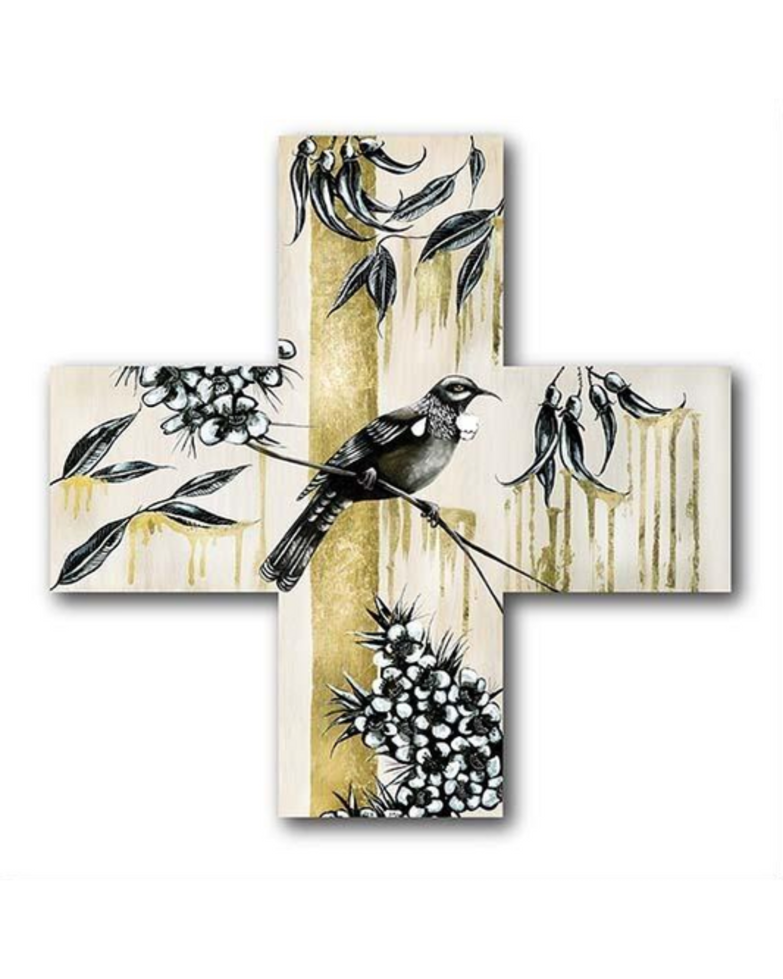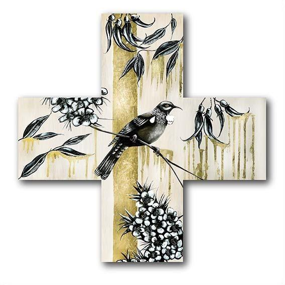 My extensive work with gold leaf and texture mediums on canvas or wood panel shapes is an important part of my art practice. My love of painting New Zealand's stunning landscapes and our native birds, flora and fauna over many years is finding real maturity and evolving in new and exciting directions.