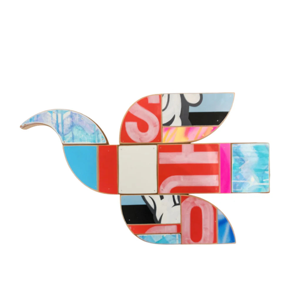 Tony employs graphic design methodologies to transform recycled timber into masterpieces. With elegant and focused brushwork, he seamlessly unites Kiwi nostalgia with contemporary art, capturing the cultural fabric of Aotearoa in a charming way. Characterised by a dynamic fusion of colour, intricate linework, and Kiwi icons, Tony’s pieces invite you to forge your own personal connections and stories