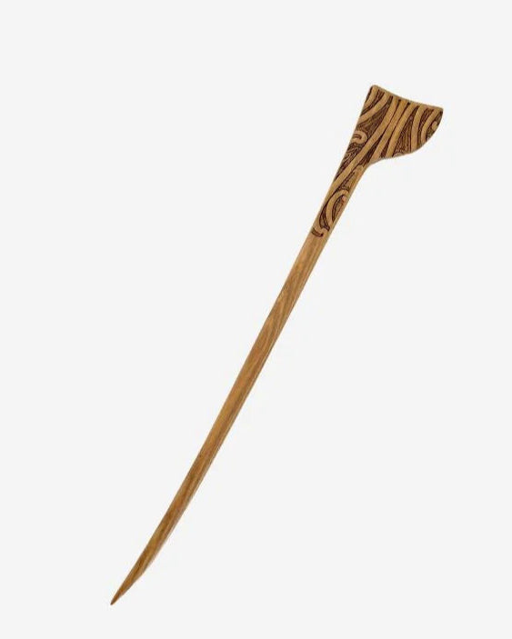 This native NZ timber Hairstick features engraved designs that draws inspiration from the rich tapestry of Māori art forms and practices such as Whakairo, Tā Moko, Taniko, and Kowhaiwhai.