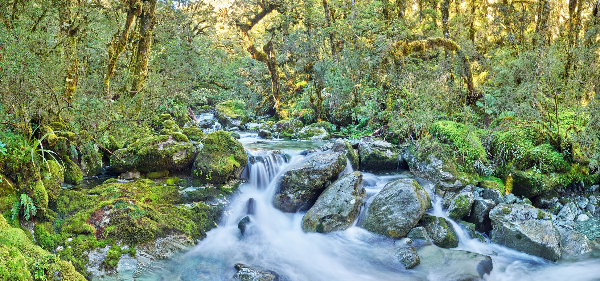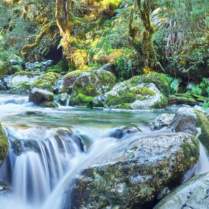 "A friend & I were supposed to be hiking the alpine ridges of the Kepler Track on this day, but the weather gods had other ideas & forced us to retreat (being blown off the track by gale force snow was not much fun!) 'Plan B' was hatched & we headed up the Routeburn instead, where we were blessed with glorious weather. After crossing a bridge I wandered off the track a little & a minute later this beautiful scene lay in front of me. The morning sun was bathing the moss laden bush in this warm glow & these tumbling rocks were simply stunning. Everything was in perfect balance & harmony, just as nature intended."