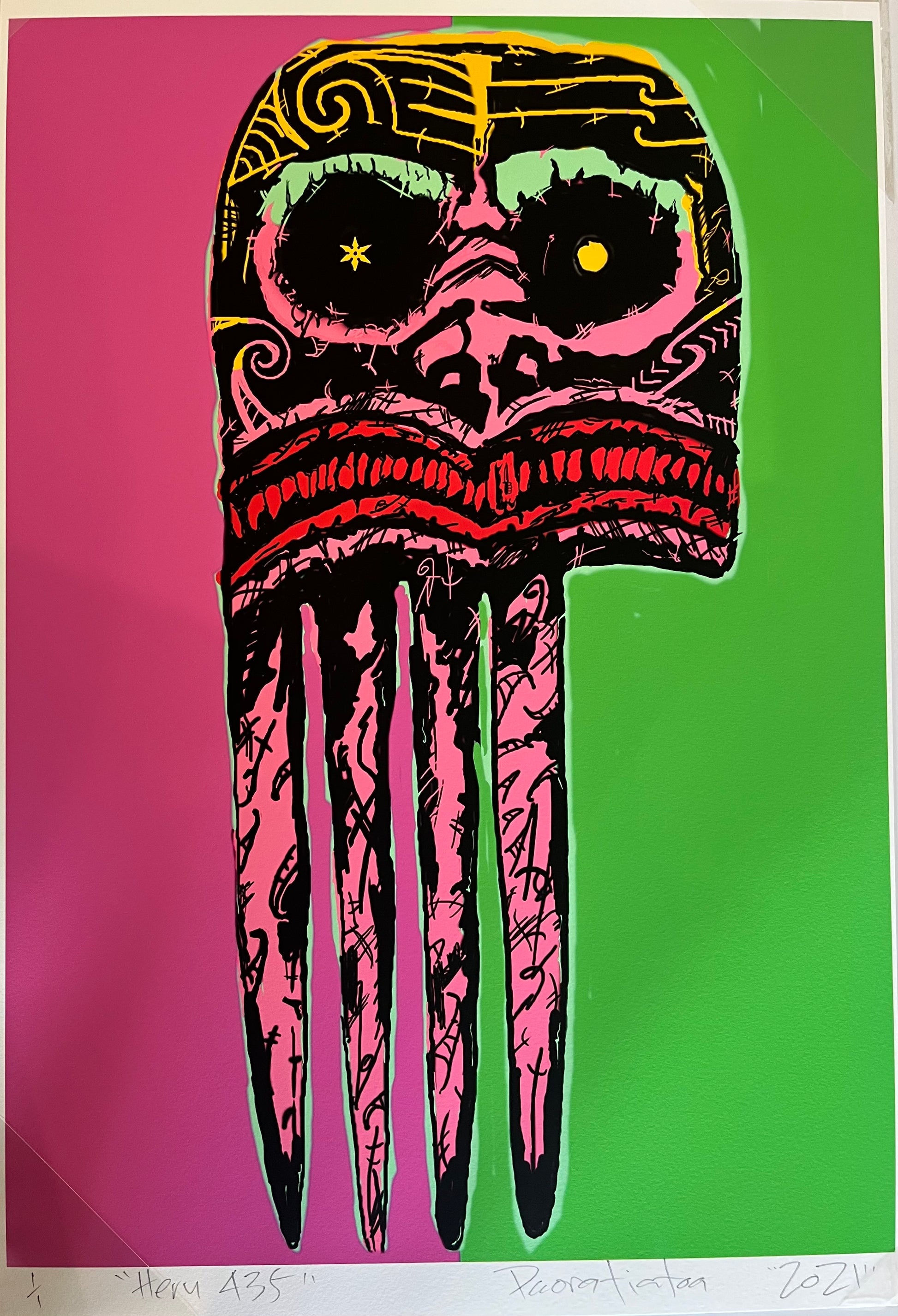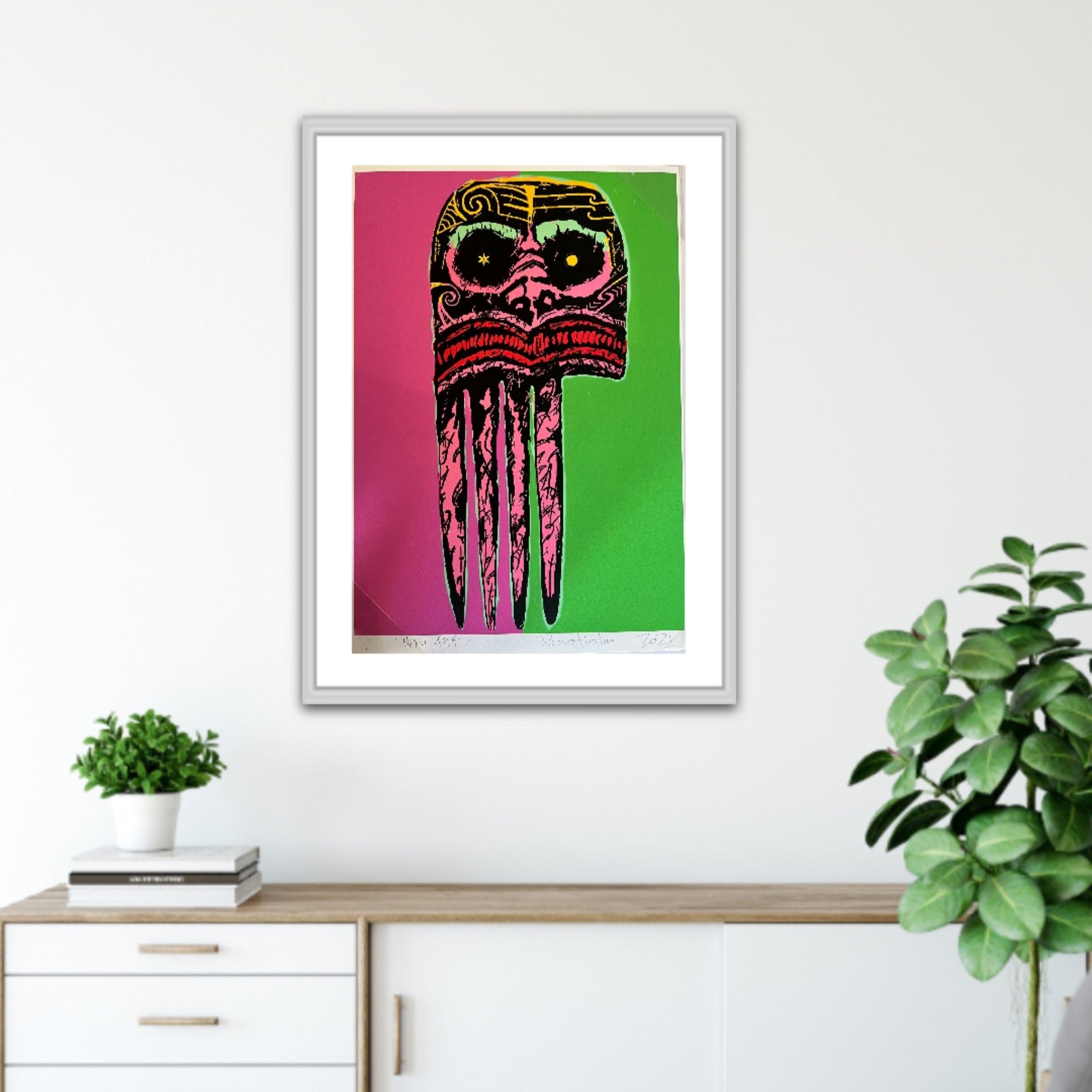My journey has involved a fusion of influences, stories, bold colour and tohu (sign). These include Māori creation myths, tā Moko, tāonga held in the British Museum, popular culture, art history, ‘DJ-ing’ and personal narrative. My screen prints are not about a single issue, but rather cover many issues that are interconnected. I am attracted to beauty in whatever shape or form it may present itself to me and hold things that are precious or have cultural significance paramount in my work.
