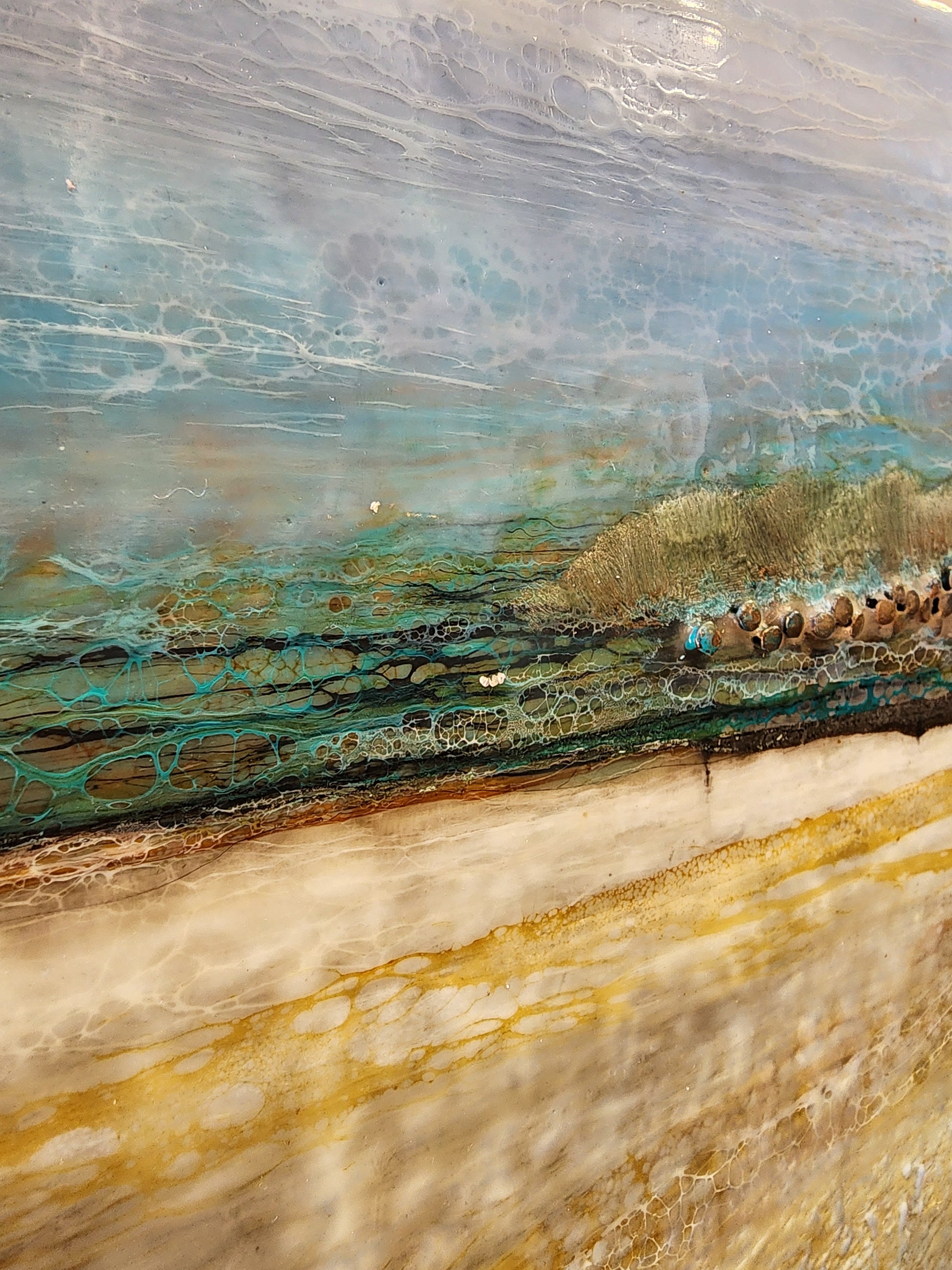Trained in Interior and Textile Design, Nicki has been painting since 1998. Her chosen medium is encaustic (beeswax and damar resin) Encaustic is an ancient and enduring technique predating oil painting and was used by the Egyptians to decorate their sarcophagi. Nicki began using encaustic from an ethical need to find an organic and sustainable medium.