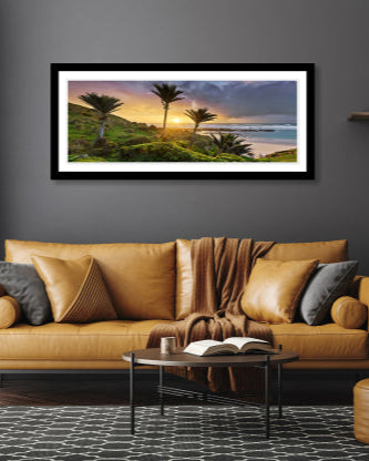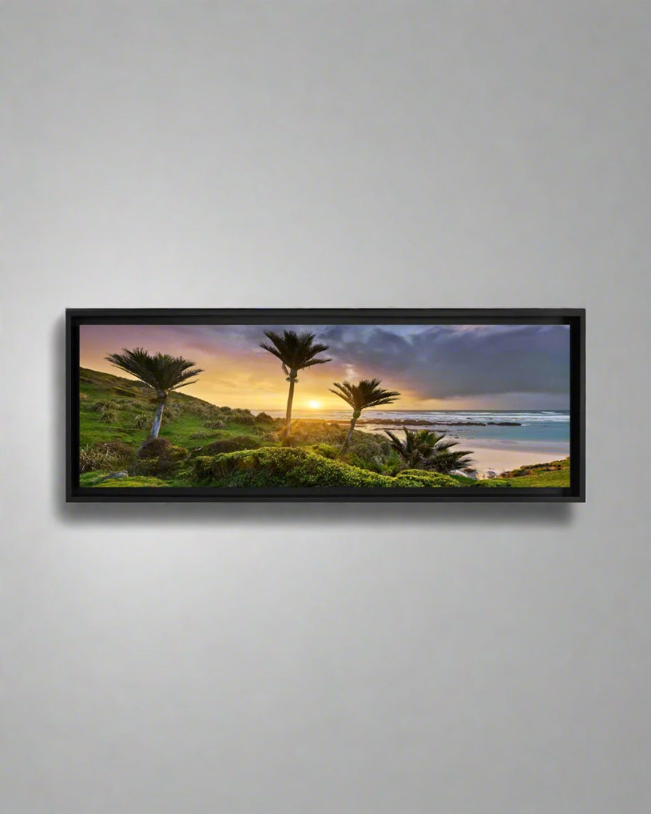 "Words fail to describe the exotic beauty & diversity of the landscape at Te Hapu, on the west coast of the South Island (approx 50km south of Farewell Spit). Not only is it incredibly unique & remote, but it keeps surprising you with different views around every corner. I first learned about it after seeing a newspaper advertisement in a hut up the Cobb valley, but it took me 5 years before I actually got around to going there, how silly was I? Aside from stunning groves of nikau sitting on a idyllic stretch of coastline, the limestone geology has created incredible rock formations that defy description. I captured this image soon after we first arrived, luckily we had just enough time to reach this beach as the sun popped out of the cloud & this all too brief show was on, but only for a couple of minutes. An absolute paradise, it felt as if we had entered a lost world."
