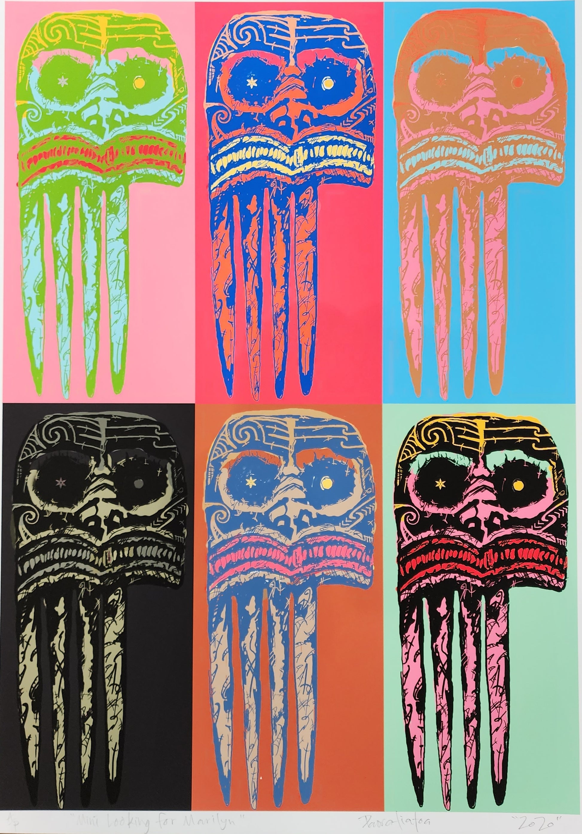 Check out this vibrant large work by Paora Tiatoa! An Andy Warhol inspired print of the Heru (comb) acquired by the British Museum in 1933.