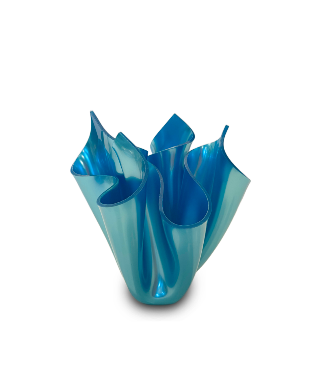 This series of blooming polymethyl methacrylate sculptures explores notions of formal uniformity, spatial density, and compositional equilibrium. Emerging from an initially planar condition, each piece is transformed through a self-taught methodology of volumetric origami. Logan employs dual flamethrowers as performative tools to activate and manipulate the thermo-reactive surface, orchestrating a play between heat and form. Each bloom is a singular, hand-crafted artefact that pushes the inherent material limits of cast acrylic — negotiating thickness tolerances, structural solidity, and thermal thresholds.
