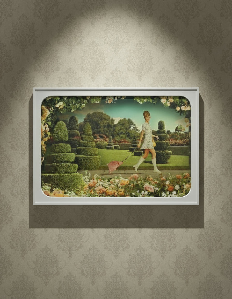 Scrambling the hands of time, Botticelli fertility goddesses are transplanted into idyllic 1960s New Zealand scenes. A fascinating decade when human inventiveness, in its ever-present desire to manicure and dominate nature, introduced many technologies that have had profound social effects. Intended and unintended.