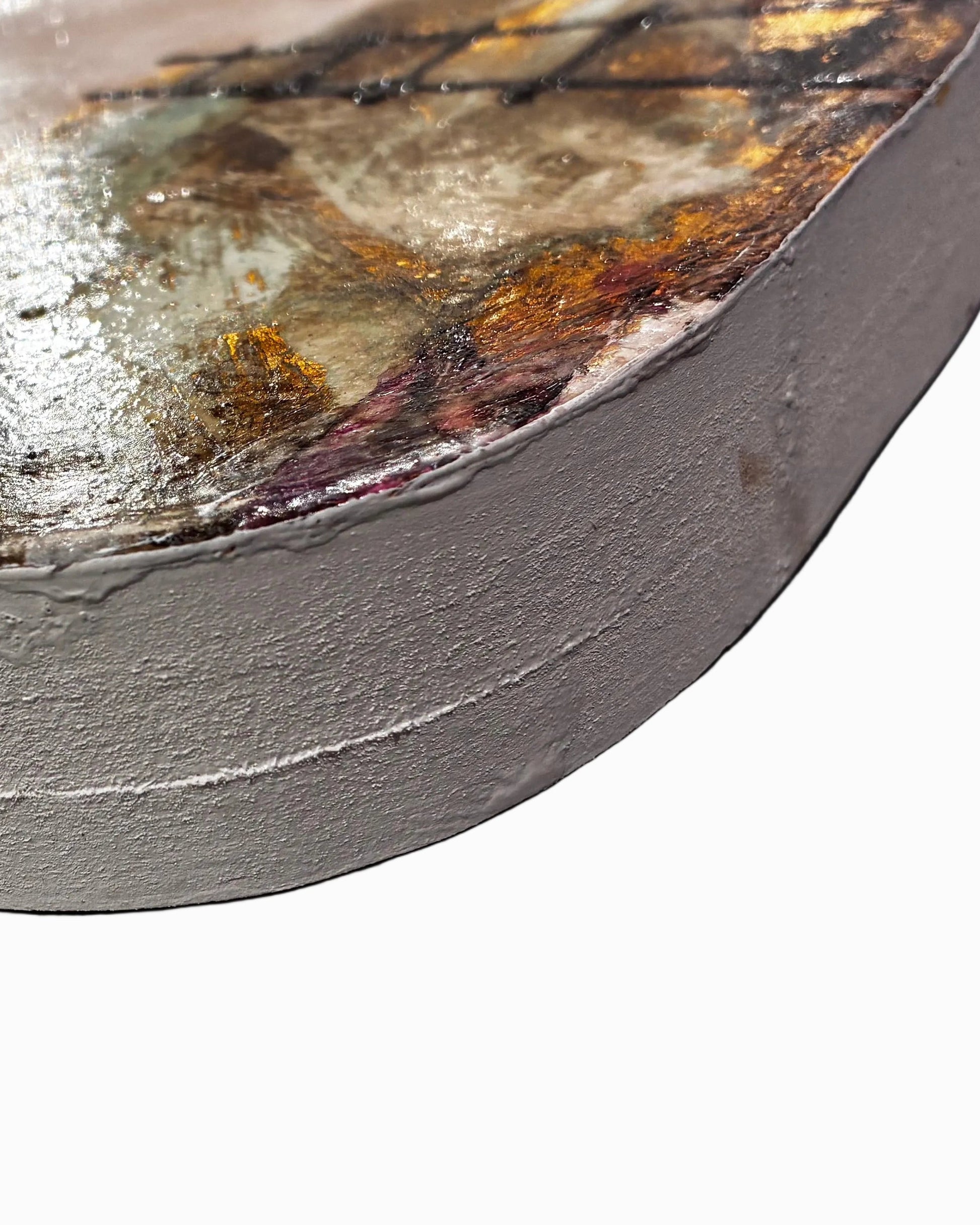 Jody Hope Gibbons is a contemporary New Zealand painter with works held in private collections here and throughout the world. She paints full-time in her Matakana studio overlooking native bush and lush green paddocks plus the ever-changing views of Sandspit harbour. The current body of works explores the materiality of paint - it pushes the boundaries of traditional painting practice and techniques. It exploits the use of stains, inks, leaf and varnish. Layers of paint are revealing yet concealing the imagery and the process of reducing and paring back is integral in the making. Ethereal dream-scape's suggest the passing into another space and place. Some of the mark of man/the painter is present.