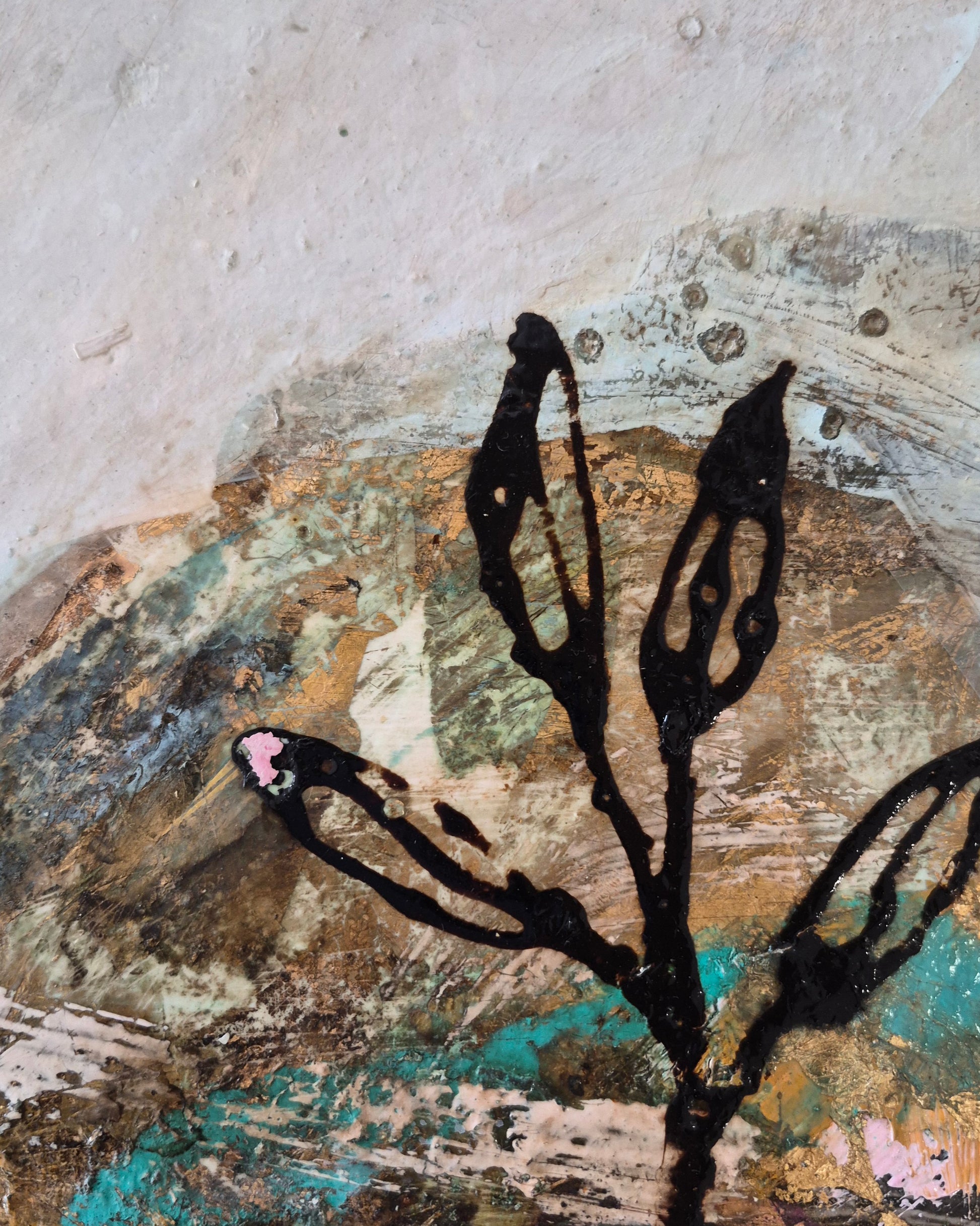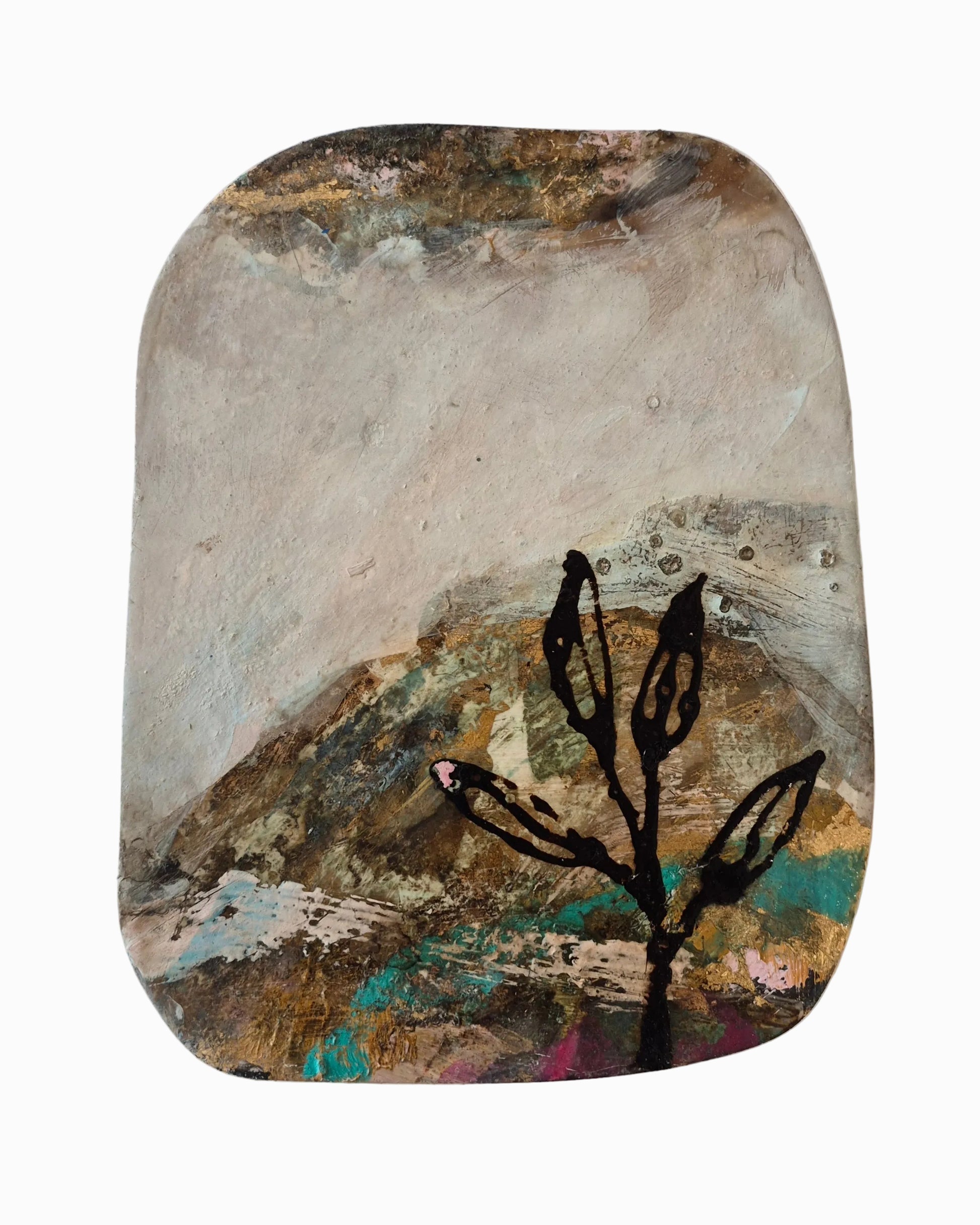 Jody Hope Gibbons is a contemporary New Zealand painter with works held in private collections here and throughout the world. She paints full-time in her Matakana studio overlooking native bush and lush green paddocks plus the ever-changing views of Sandspit harbour. The current body of works explores the materiality of paint - it pushes the boundaries of traditional painting practice and techniques. It exploits the use of stains, inks, leaf and varnish. Layers of paint are revealing yet concealing the imagery and the process of reducing and paring back is integral in the making. Ethereal dream-scape's suggest the passing into another space and place. Some of the mark of man/the painter is present.