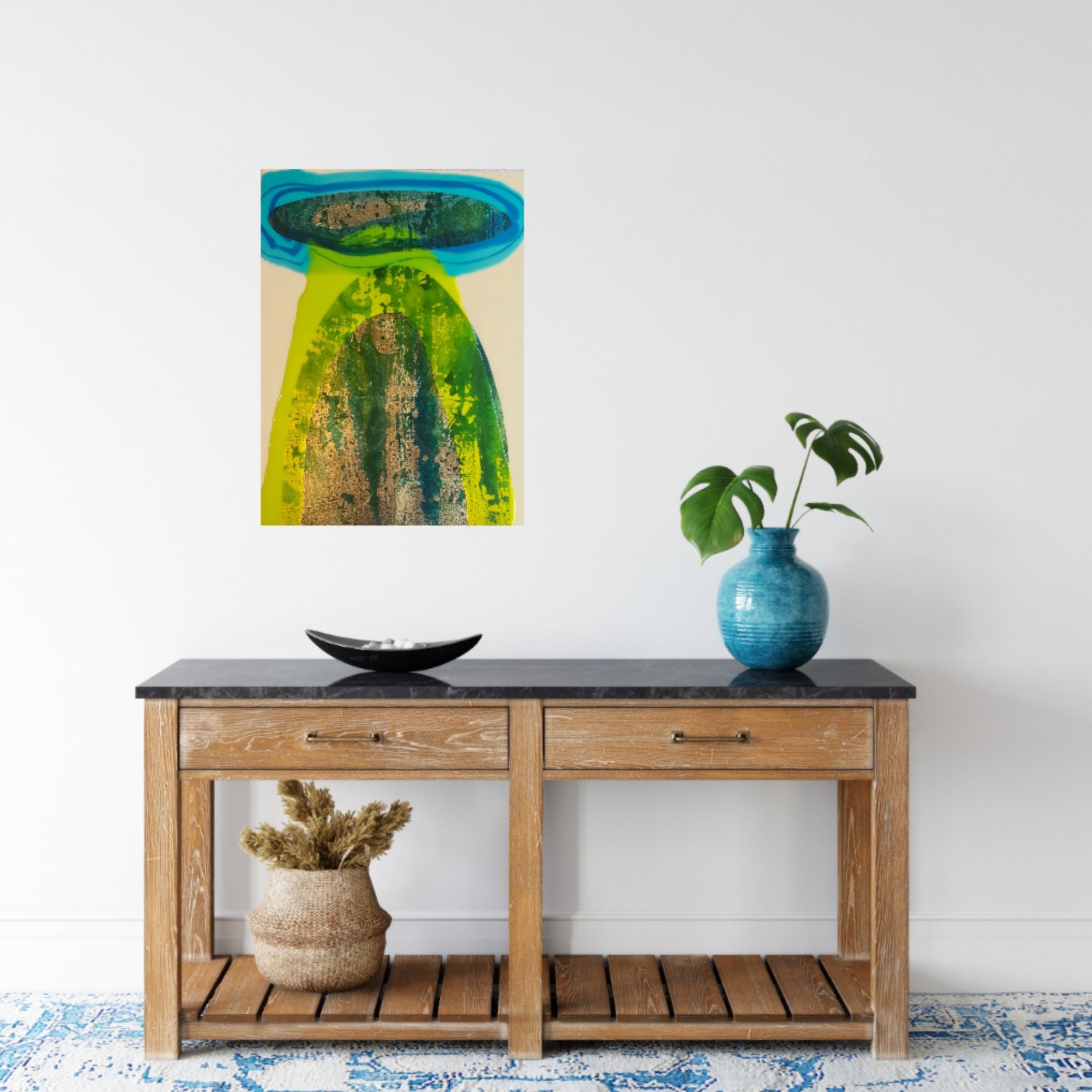 Rae's works pulse with the kinetic freedom of fluidity and light. She uses multiple veils of pigment, resin and ink, which blend and react against each other creating beautiful forms and textures. The end result is spontaneous, subconscious, and sensual.