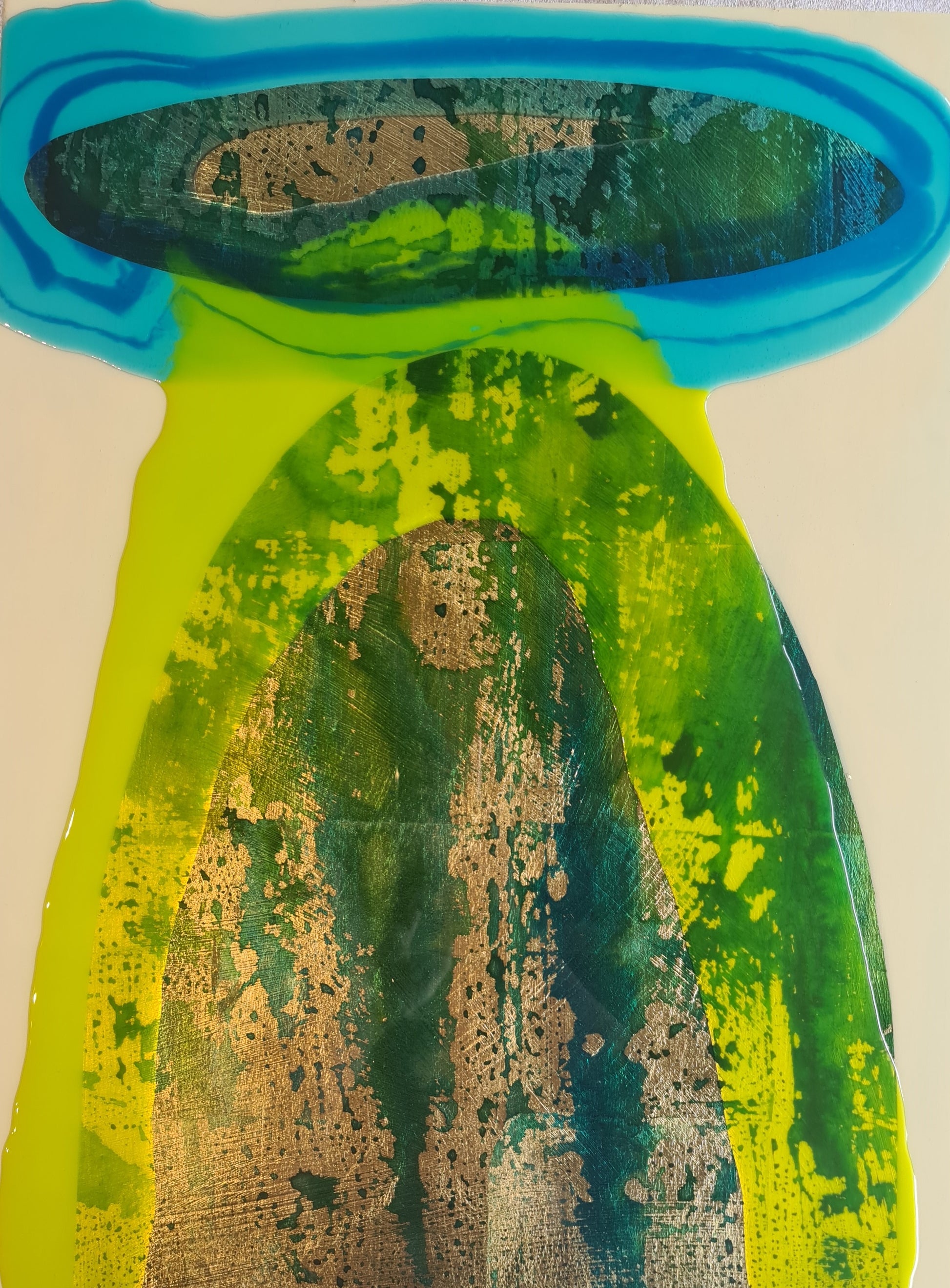 Made with layers of Resin, Gold Leaf and Inks.