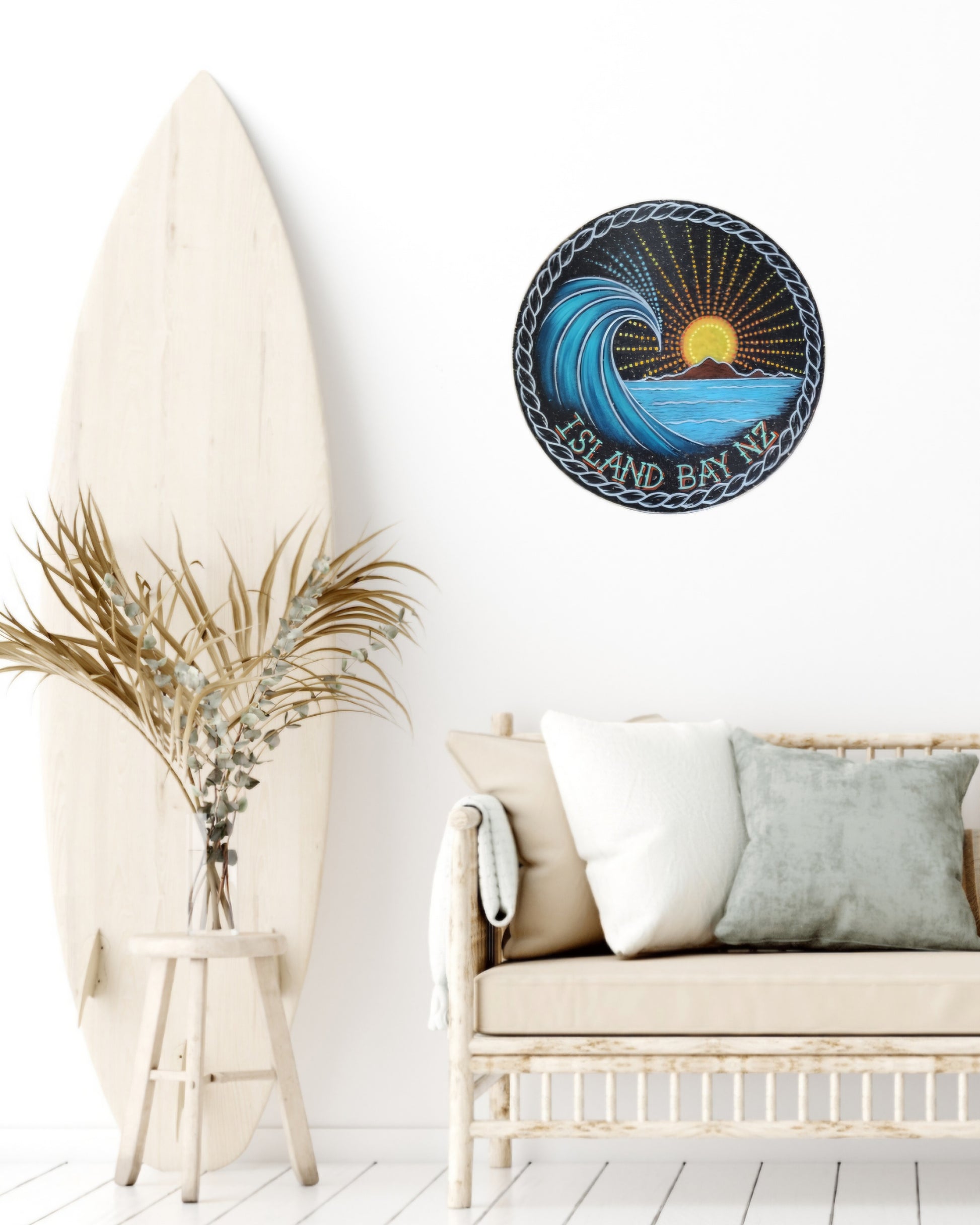 Tony employs graphic design methodologies to transform recycled timber into masterpieces. With elegant and focused brushwork, he seamlessly unites Kiwi nostalgia with contemporary art, capturing the cultural fabric of Aotearoa in a charming way. Characterised by a dynamic fusion of colour, intricate linework, and Kiwi icons, Tony’s pieces invite you to forge your own personal connections and stories