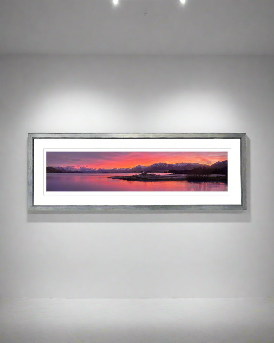 "It's difficult to imagine a more serene backdrop for Lake Tekapo's iconic Church Of The Good Shepherd than the majestic southern alps, set alight by this fiery display. After 3 clear days & frosty mornings, a cloud front was moving eastward, so I gambled this might make a good recipe for a colourful dawn. Just when I didn't think the colour was going to develop, the sky began to glow these bright oranges & pinks, wow! And on this rare occasion, my only company was a pair of ducks on the lake - not a single vehicle in the normally crowded car park. Fantastic!"
