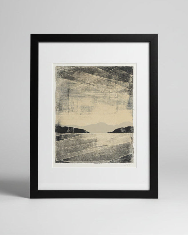 Hamish is a Kāpiti based printmaker and painter. He has recently returned home to NZ after 14 years living in London. His work consistently features landscapes, seascapes or horizons. Combining painting, printmaking, mixed media and digital manipulation, he layers traditional and modern techniques to create fresh perspectives.