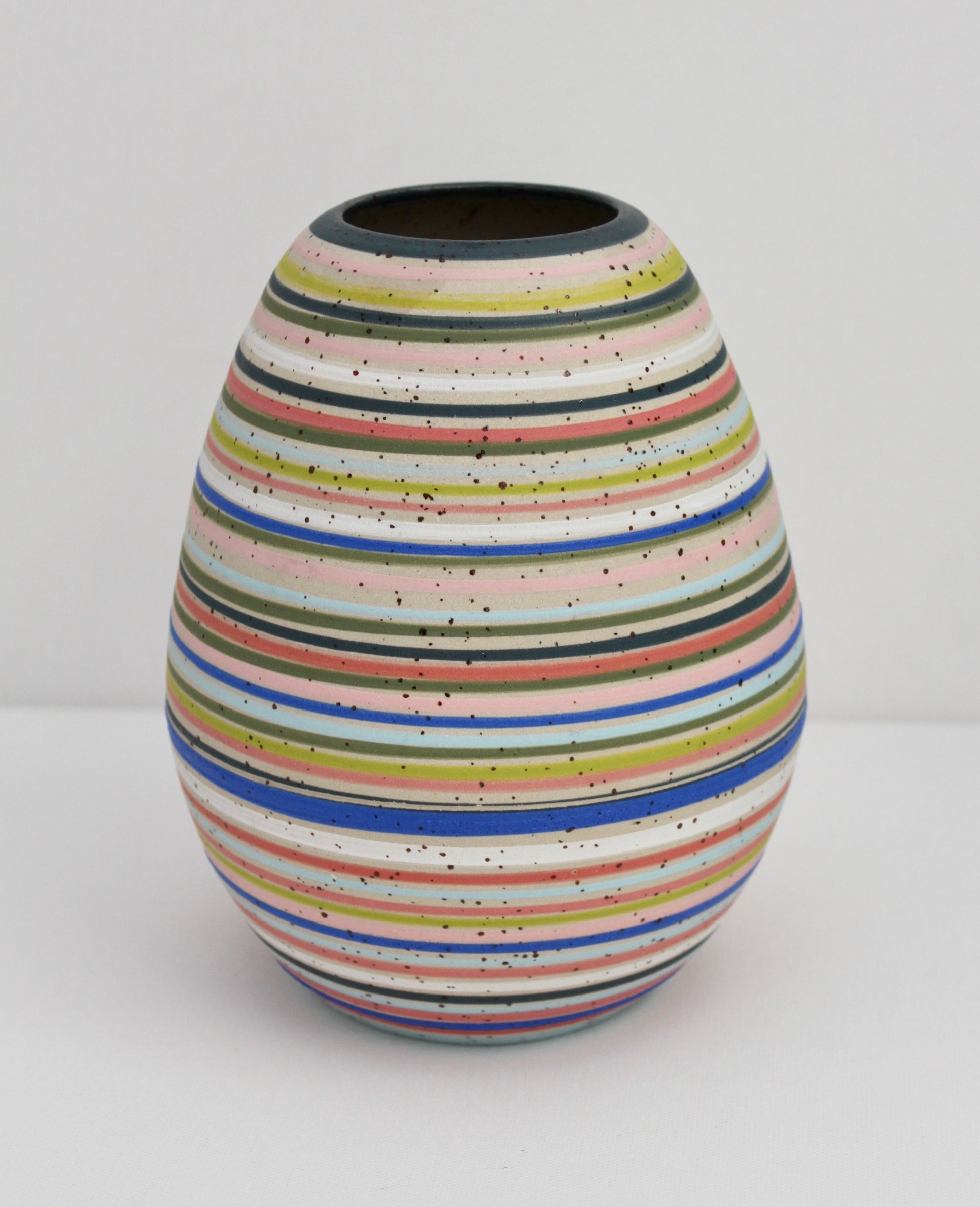 My stripe ceramics are hand thrown & hand painted speckled stoneware, gloss glazed inside & fully functional. Speckles are flecks of iron in the clay that pronounce once the piece fires at acer 900 degrees celsius.