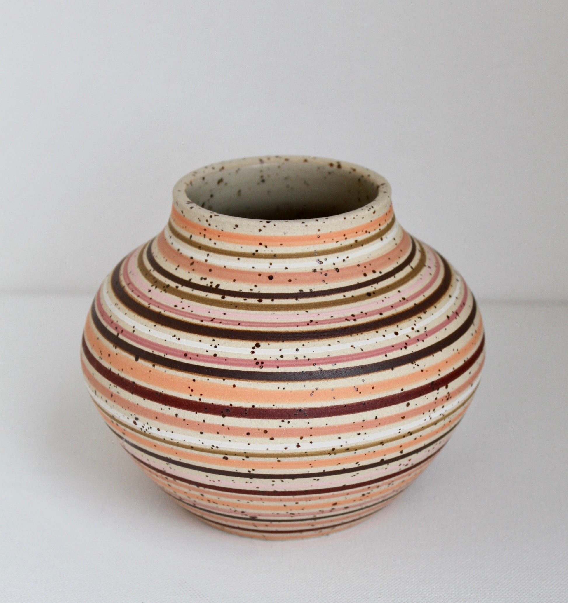 My stripe ceramics are hand thrown & hand painted speckled stoneware, gloss glazed inside & fully functional. Speckles are flecks of iron in the clay that pronounce once the piece fires at acer 900 degrees celsius.