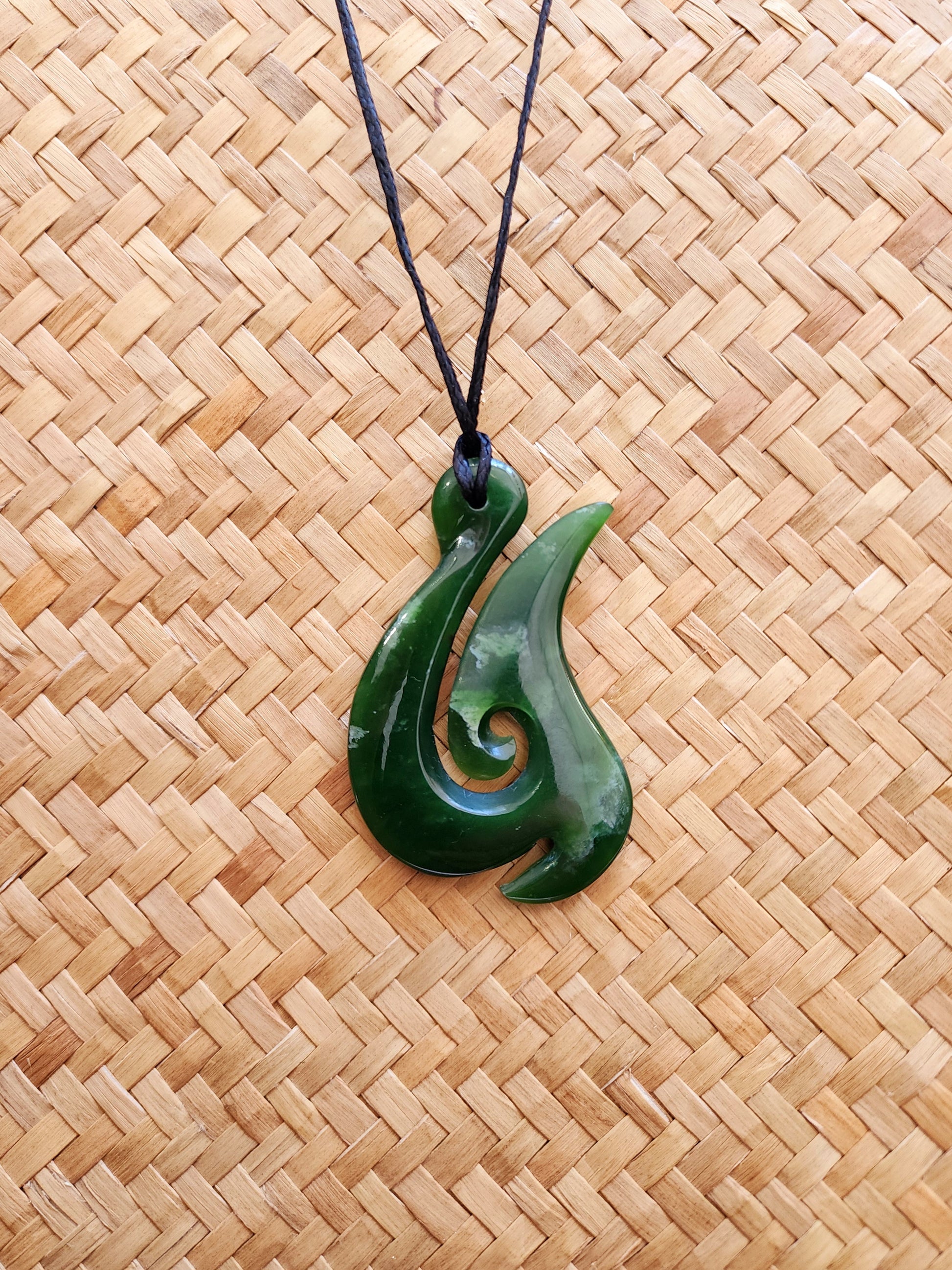 The Hei Matau is carved in the shape of a stylised fishhook. It represents strength, prosperity, fertility, good luck and safe travel over water. It's meaning originated from the Maori legend of Maui who once caught a great fish using only a woven line and hook made from the jawbone of his grandmother.