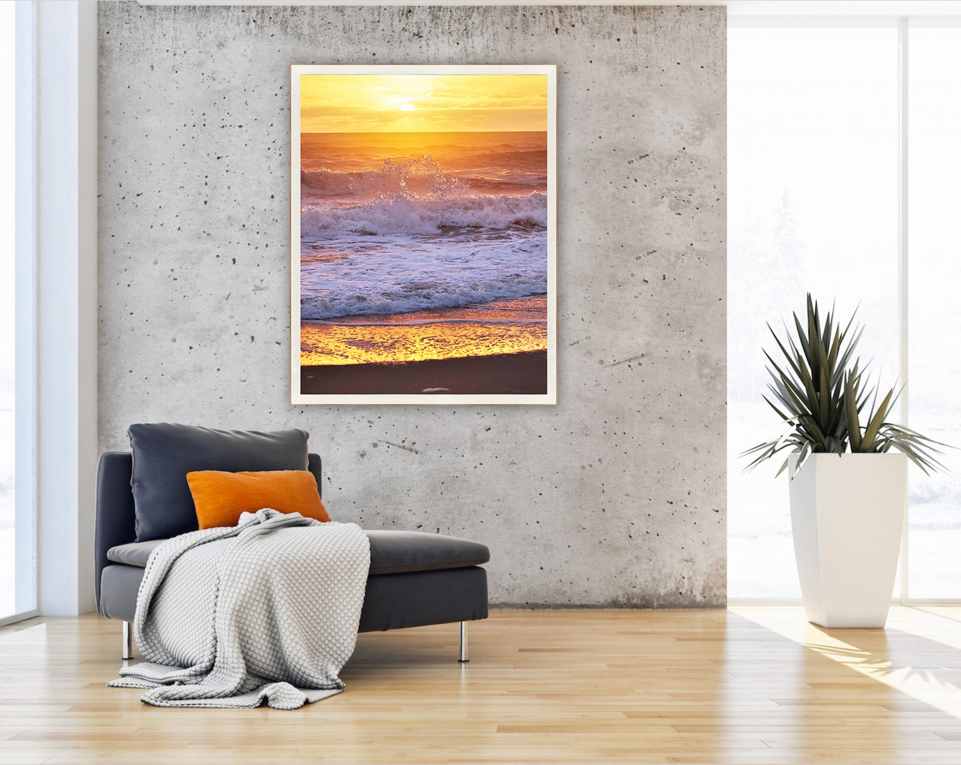 As I waited for the sun to dip below a heavy bank of cloud, my plan was to capture a wide panorama of the river bank & nikaus. But when the sun re-appeared, a large bluff blocked the sun from reaching that area. Bugger! But I couldn't waste this gorgeous light, so I quickly switched lenses & raced to the water's edge. After shooting a series of Oystercatchers silhouetted with the rocks & waves, I turned my attention to a small rock, that sat just above the surface of the sea. Sensing some magic at play with the light & shapes of each wave, I started shooting continuous waves as they broke over this rock. Until finally, my patience paid off when my finger triggered the shutter at this precise moment, as the wave formed this perfect circle suspended above the sea. Wow! And to have captured this with such clarity & resolution on my Phase One XF makes this a very rare, one in a million shot. I'm proud to release what I regard as the pinnacle of my career.