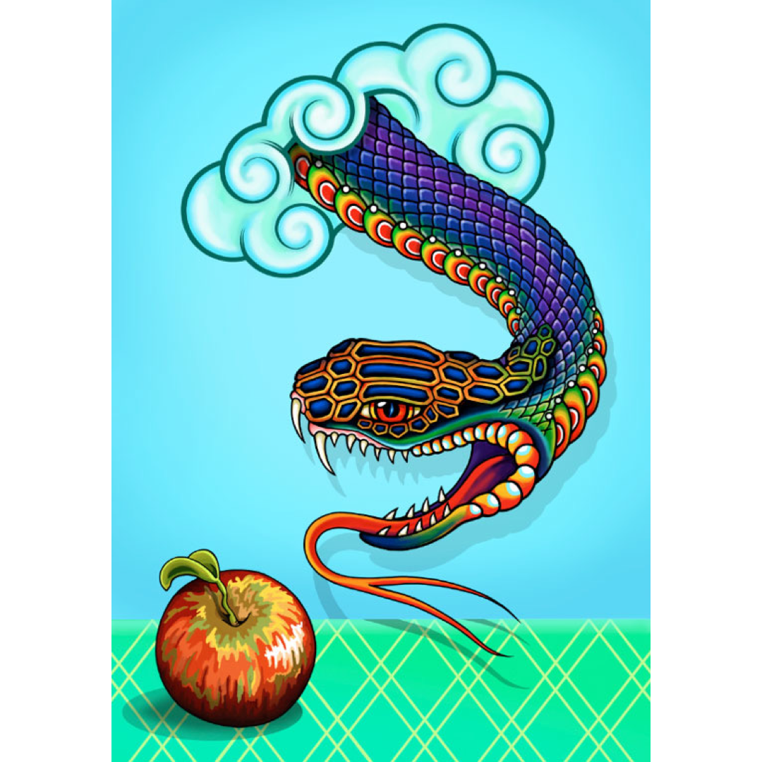 This artwork is entitled The Knowledge Of Good And Evil, make of it what you will.