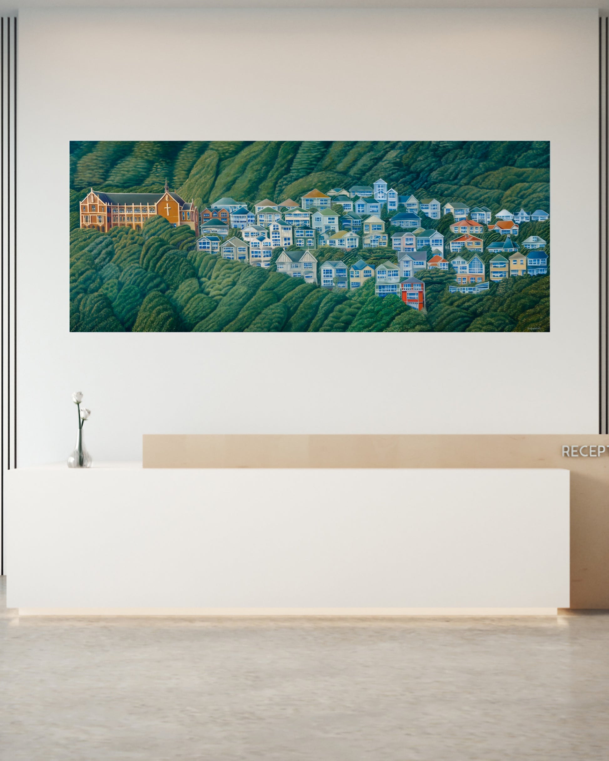 When I began working on “The View,” which looks out across Oriental Parade in Wellington, I was guided by memories and the stories I’ve carried with me - those shared by family and friends, both from the past and the present. Their presence is woven through every brushstroke, and they became a constant thread in my process. I felt driven to capture the houses as faithfully as possible, though I know they aren’t rendered with absolute precision.