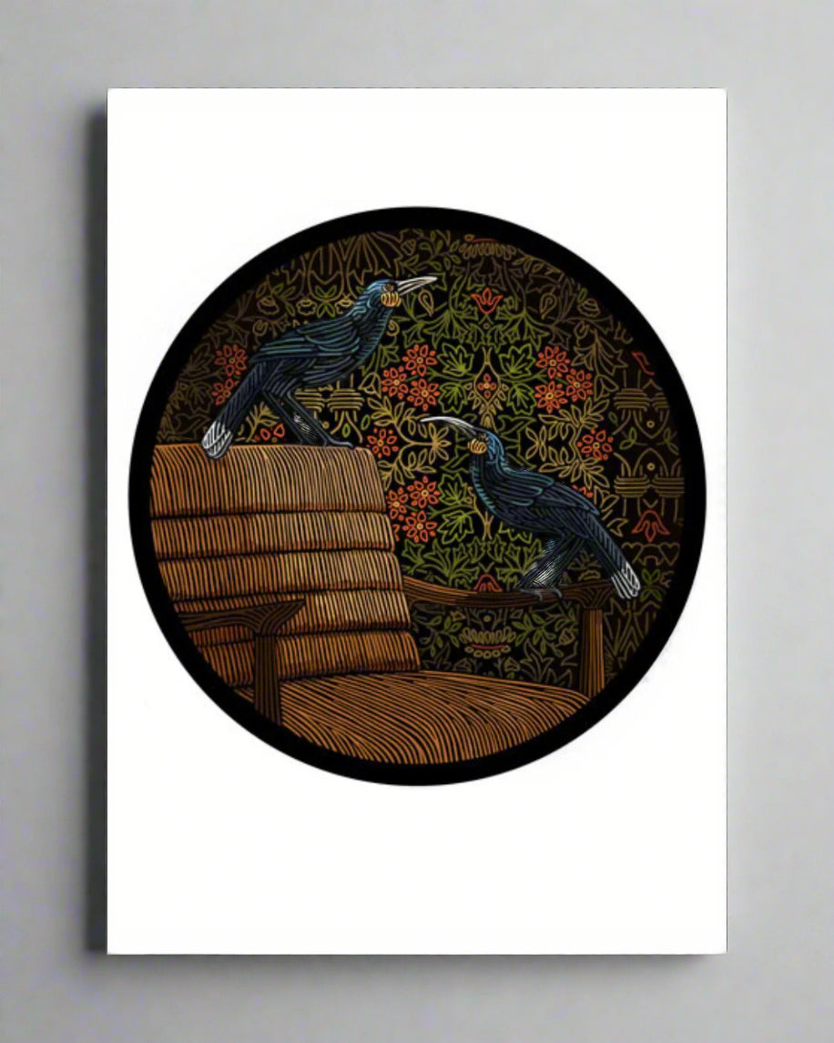 Her drawing style is unmistakable, often likened to the arts and Crafts work of William Morris. She is now beginning to explore Native species in New Zealand while also maintaining a sentimental look back at her own heritage and the Native species of Great Britain.